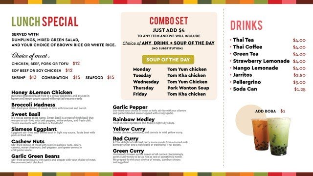 Feeling thirsty? Refresh yourself with their sweet Mango Lemonade or indulge in a traditional Thai Tea. The outdoor seating options enhance your dining experience, making it perfect for a casual meal with friends or a takeout feast at home.